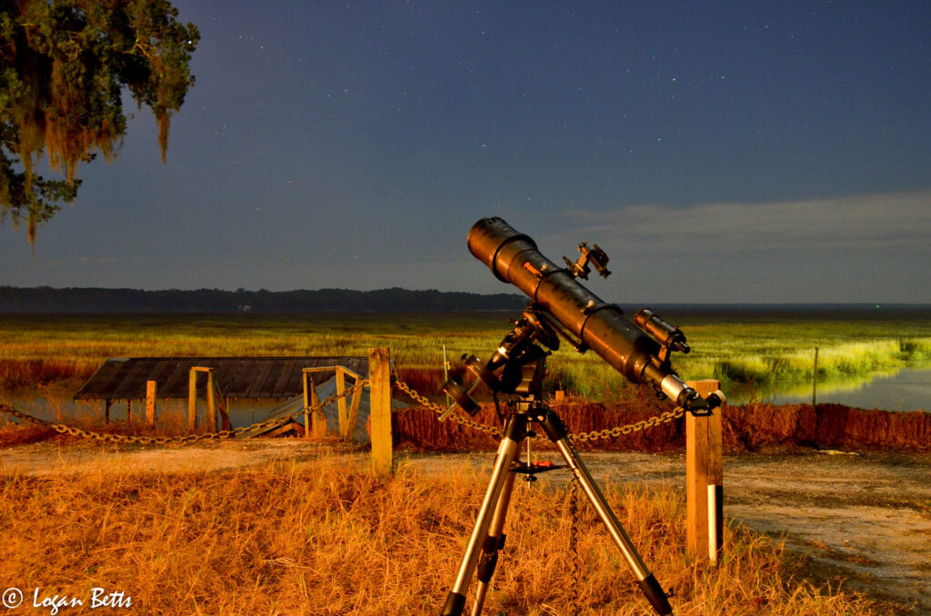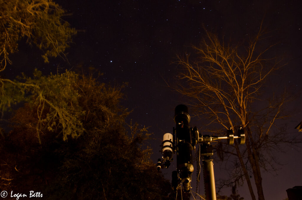 Most recent image of M42, imaged with the same Celestron Cr-6, AS-GT mount, and Nikon D7000 in January of 2024. Learning the basics of processing and “real” stacking. Lot’s more in the works…Partial Eclipse from Saint Simons Island (2014?)Lunar Eclipse in 2014 or 2015. Yard Cannon & ST80 in my Parents yard in 2014. “Yard Cannon” in a long exposure over looking Shellmans Bluff, GA.
